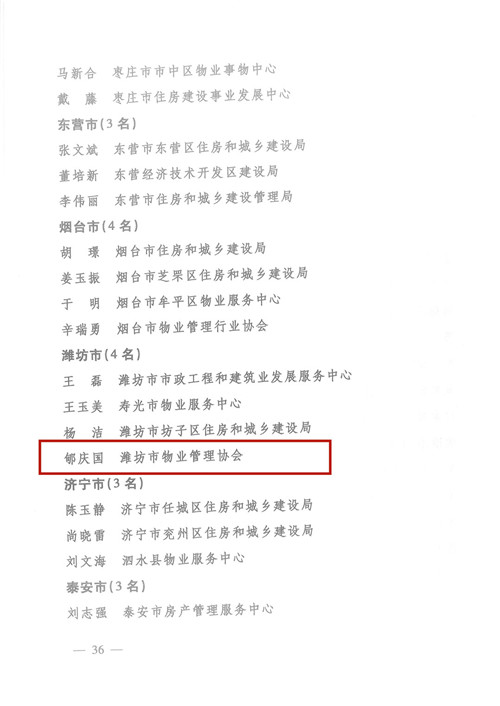 2019年,山東省住房和城鄉(xiāng)建設(shè)廳開展了物業(yè)服務(wù)行業(yè)文明創(chuàng)建“標(biāo)準(zhǔn)建設(shè)年”活動,為表揚鼓勵先進,發(fā)揮示范引領(lǐng)作用,激發(fā)創(chuàng)建工作熱情,經(jīng)逐級申報、審核、公示等程序,公管公司獲得以下省級榮譽:濰坊昌大公共建筑物業(yè)管理有限公司榮獲“全省物業(yè)服務(wù)行業(yè)文明創(chuàng)建標(biāo)兵企業(yè)”榮譽稱號;總經(jīng)理郇慶國兼濰坊市物業(yè)協(xié)會會長榮 ......
