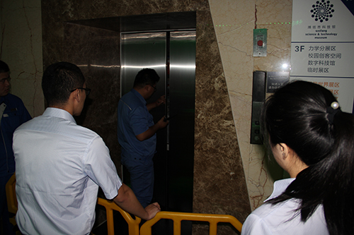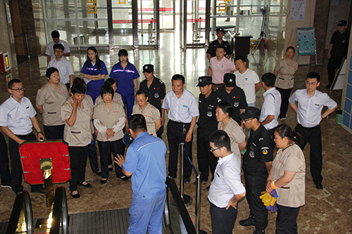 為了提升工作人員電梯運(yùn)行、使用過程中各類意外和困人事件的處置能力,規(guī)范電梯值班員及電梯維保人員的救援措施,同時(shí)配合6月份安全生產(chǎn)月的活動(dòng),由濰坊昌大公共建筑物業(yè)管理有限公司藝術(shù)中心項(xiàng)目組織業(yè)主及工作人員于二零一七年六月三十日9:00在濰坊市科技館舉行電梯困人應(yīng)急演練,解救被困人員后由專業(yè)電梯維保人員講解直梯和扶梯注意事項(xiàng)及救援措施。