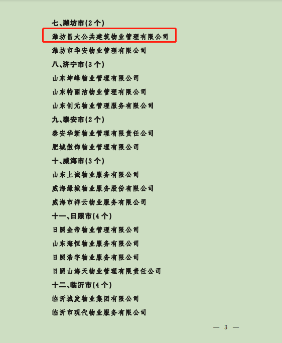 9月3日,山東省住房和城鄉(xiāng)建設(shè)廳公布關(guān)于品牌建設(shè)典型示范案例和“質(zhì)量標桿”項目(第二批)名單,我公司作為品牌建設(shè)典型示范案例予以公布、服務管理的濰坊市文化藝術(shù)中心和峽山區(qū)創(chuàng)新創(chuàng)業(yè)服務中心同時獲得質(zhì)量標桿項目。