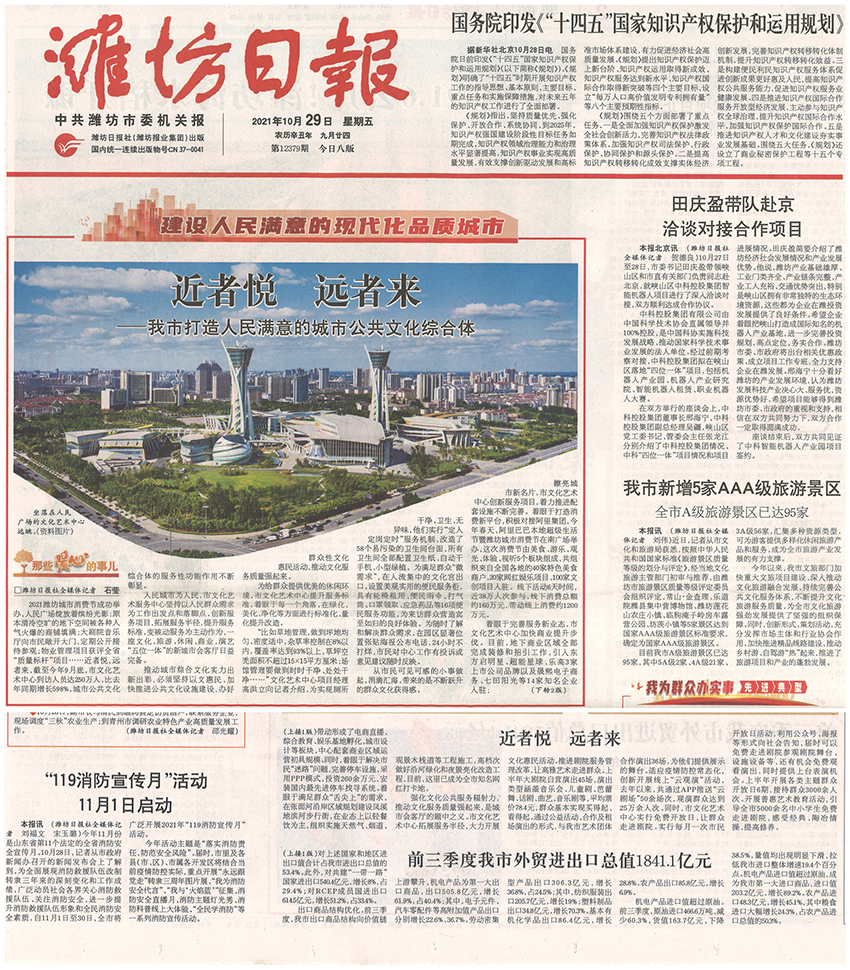 10月29日,濰坊日報對我公司服務(wù)管理的濰坊市文化藝術(shù)中心項目進行了頭版報道,現(xiàn)就我公司服務(wù)管理的大型公共建筑項目做如下介紹:
